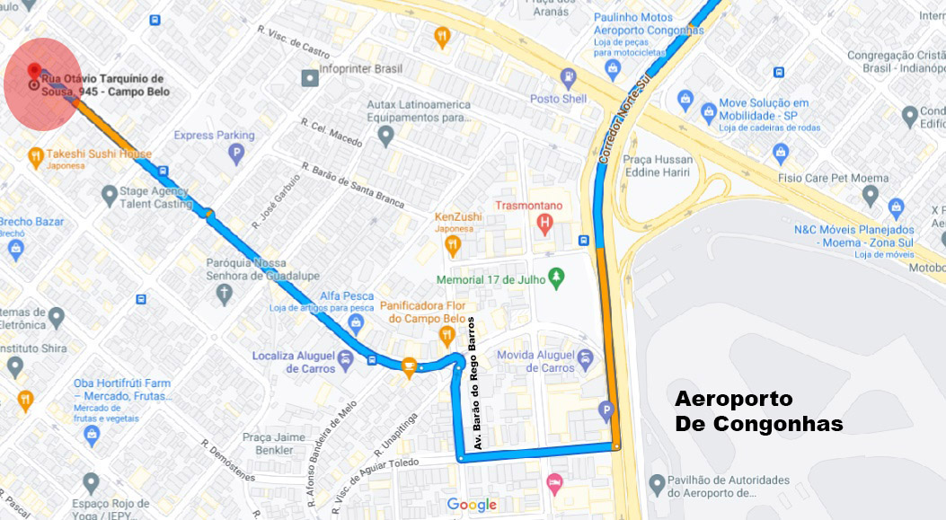 Seguindo pela Avenida Interlargos ou Washington Luis no sentido BAIRRO-CENTRO, após passar em frente ao aeroporto, mantenha-se a direita para entrar sentido avenida dos Bandeirantes, em seguida mantenha-se a esquerda para fazer o retorno, quando estiver subindo sentido avenida 23 de maio, mantenha-se a direita para passar debaixo do viaduto, após passar debaixo do viaduto siga em frente sentido aeroporto, entre na terceira rua a direita VISCONDE DE AGUIAR TOLEDO, depois na segunda a direita BARÃO DE REGO BARROS, logo a frente na rotatória desça a esquerda na rua Rua Otávio Tarquínio de Sousa e siga até o número 945.