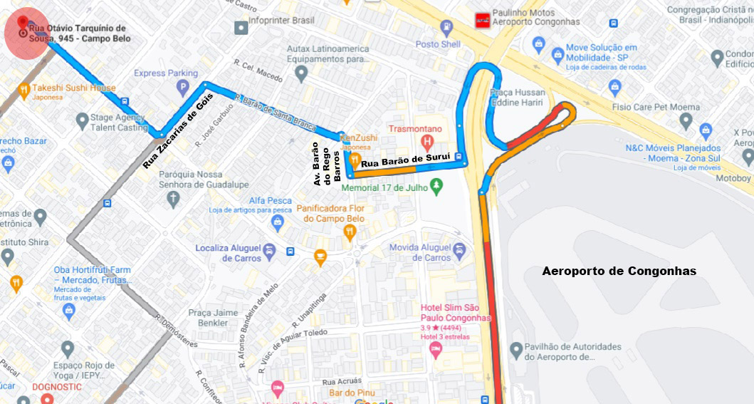 Seguindo Pela Rua Vieira de Moraes sentido aeroporto, Vire à esquerda na Rua Conde de Porto Alegre, Vire à esquerda na Rua Otávio Tarquínio de Sousa Siga até o número 945.